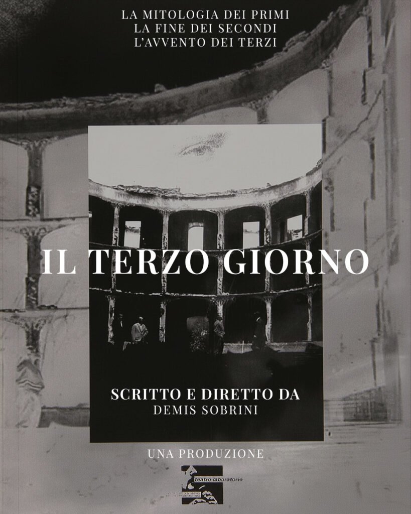 Disorientato fra vera o apparente democrazia, libertà, pace, in una società divisa ed insensibile, dei “secondi giorni”, dei giorni piani della prosa, il protagonista del lungometraggio, Sileno, in un’ambientazione onirica da futuro prossimo, (2048), sconfina il suo ruolo di marionetta attore al servizio di pubblico e potere. Egli si fa scoprire da un maestro, Nietzsche, come possibile eletto che potrà portare il nuovo ordine artistico e di vita: sconfinare la pianura e la ripetizione indifferente sarà la sua missione, per raggiungere un nuovo giorno, il Terzo, di spessore, alto profondo, dove tutti potranno raggiungere una presenza autentica e diretta di sé stessi nel mondo, dove tutti potranno essere protagonisti, attori, di un’opera d’arte d’esistenza, viva! Sileno accetta il ruolo mitologico, si fa addestrare all’azione, e porta nel mondo la scoperta di un artista-scienziato dei primi anni duemila, un certo Frankenstein, che nella sua caverna aveva scoperto la formula per cui la materia inanimata poteva ritornare in vita; con un semplice fiore, una rosa, ora Sileno può decostruire, con “attentati terrorartistici”, l’ordine dei secondi giorni, e dalla cenere e dai resti dell’operazione, egli può ridare vita, rigenerare l’uomo e una nuova possibilità. La sua missione si diffonde per il mondo, raccoglie discepoli e sempre più successi, e raggiunge la preoccupazione di chi rappresenta il Potere che controlla le masse future, incarnato dalla figura di un Imperatore. Sotto le mentite spoglie di un ottimismo civile ed artistico, con il metodo della creazione di paure e nemici, il “Capo” dei secondi giorni, che si fa chiamare Socrate II, predica alle masse la difesa del bene contro il male, del giusto contro l’ingiusto, della libertà contro la schiavitù. Il tutto a tutti i costi possibili, proponendo una democrazia apparente e rappresentativa dove tutto è legittimato dall’approvazione di masse sotto messe, imbambolate, di spettatori passivi che non si rendono conto dell’inganno della loro esistenza, del loro ruolo: l’insensibilità, la guerra, la violenza, il controllo, lo sfruttamento e l’abuso dei pochi sui molti, le divisioni, sono normali e necessarie conseguenze di difesa della civiltà costituita da duemila e seicento anni. Ma siamo giunti agli “ultimi giorni secondi”, predica Nietzsche a Sileno. Inevitabilmente allora il film si chiude con lo scontro fra le due saggezze e visioni di vita, in una scena finale dove male e bene, giusto ed ingiusto, libertà e schiavitù, attore e spettatore, si con-fondono e dove tutto e tutti rientrano indistinti e diversi, per la possibile vittoria e l’avvento de “Il Terzo Giorno”.